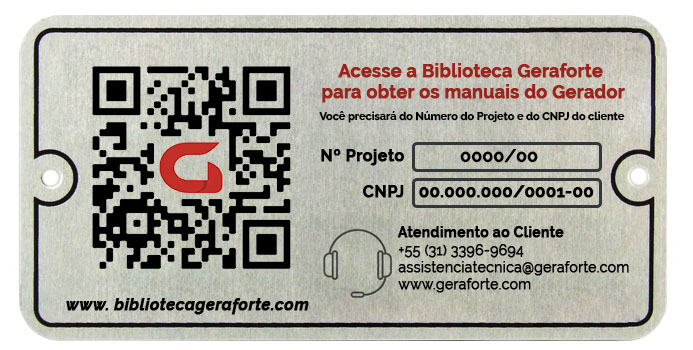 A documentação técnica dos grupos geradores GERAFORTE está disponível de forma digital para cada máquina fabricada, considerando todas as particularidades do equipamento.
